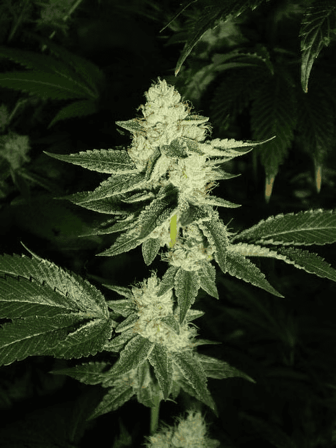 These nuggets are tightly packed, giving them a weighty and substantial feel. This density contributes to the strain’s overall potency and quality. Interspersed within the dense buds, you may find fiery-orange pistils (hairs) that add a striking contrast to the rich green background.